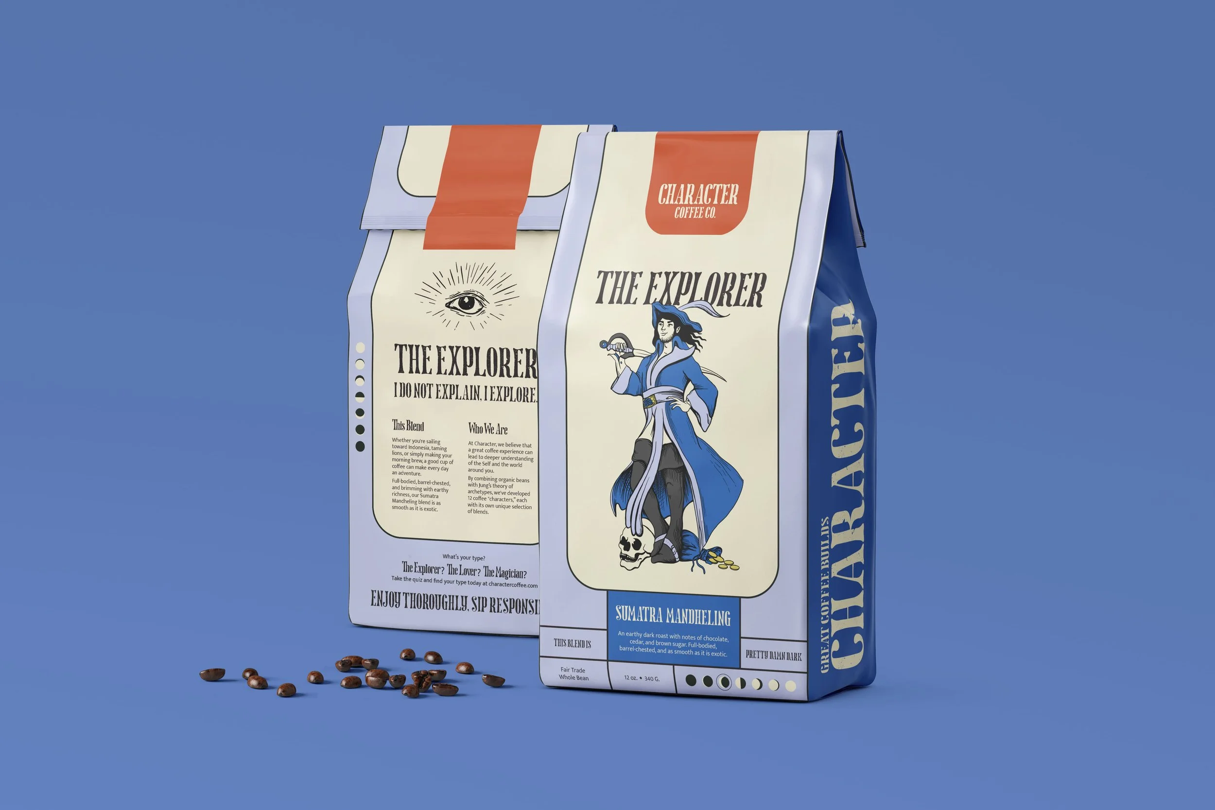 Character Coffee is a new e-commerce coffee company. This brand provides a unique and personalized coffee experience by using Jung’s theory of archetypes to create different coffee “characters” to help consumers find their perfect brew. The result is a playful, engaging brand aimed at providing customers a deeper understanding of flavors (and themselves) at all touchpoints.