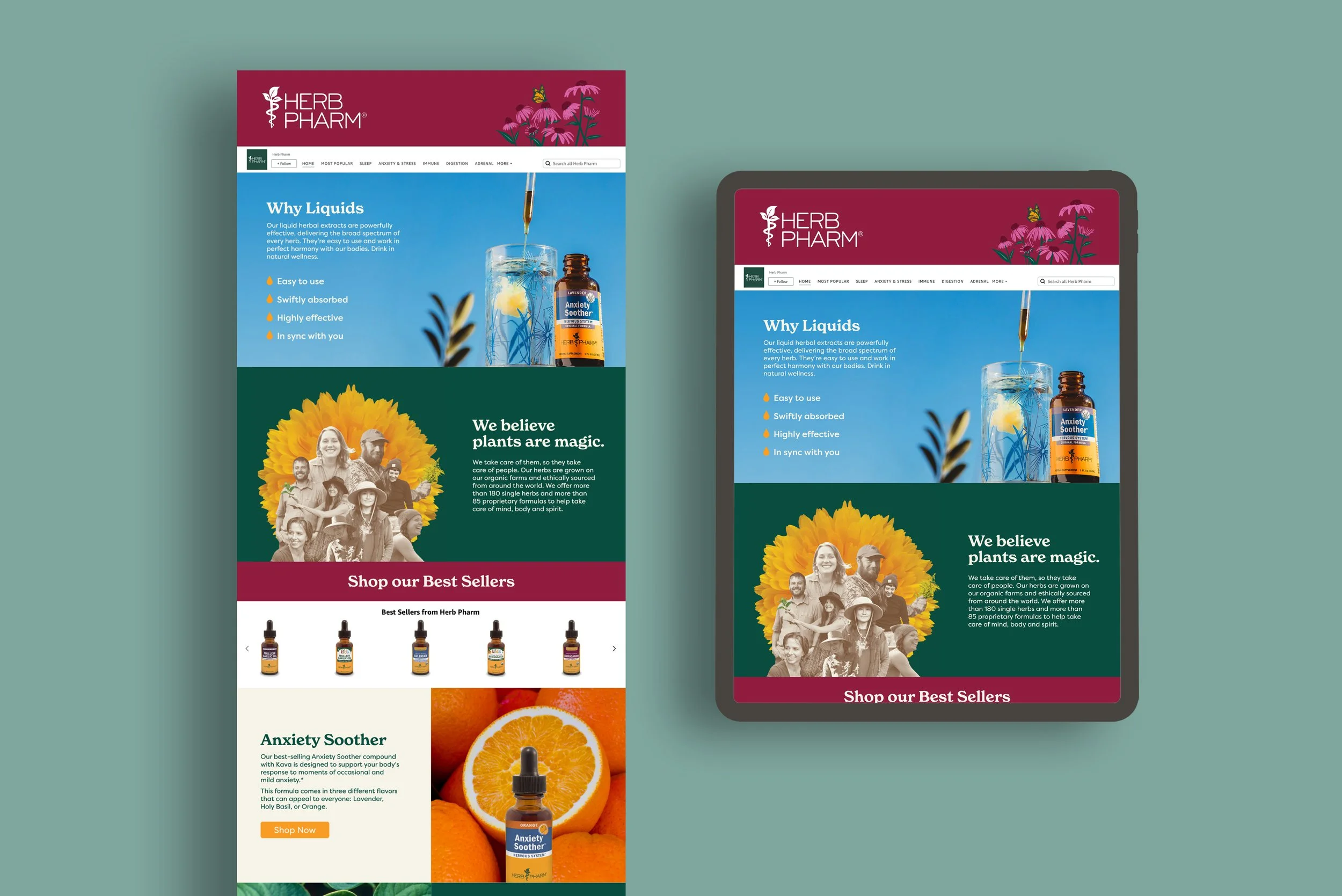The brand’s fanbase had become increasingly niche and limited over the years, which ultimately led to a decrease in engagement, brand visibility, and sales. This was exacerbated by the hundreds of new herbal brands now entering the industry and appealing to younger, more engaged audiences. The goal for Herb Pharm’s rebrand and rollout was to enliven the brand, bring in young, engaged customers, make herbal education and product information more accessible, and improve sales over time.